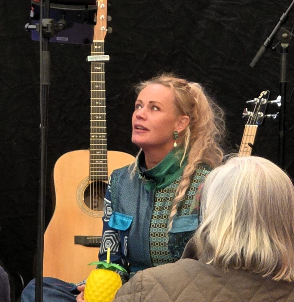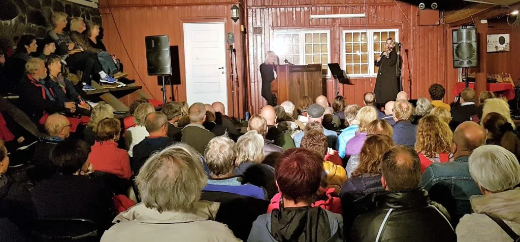 Så blei det allsong med Blåmann, blåmann bukken min. Det blei så bra at Bråten Berg sa (den noko gråhåra) forsamlinga byrja likne eit demenskor. Fornøgd applaus og latter. På igjen med ny allsong med Vesle lerka.