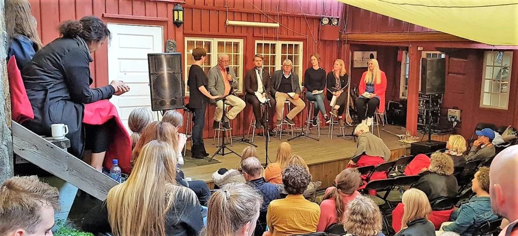 Heile sytten personar utanom debattleiar Morten Skauge deltok.