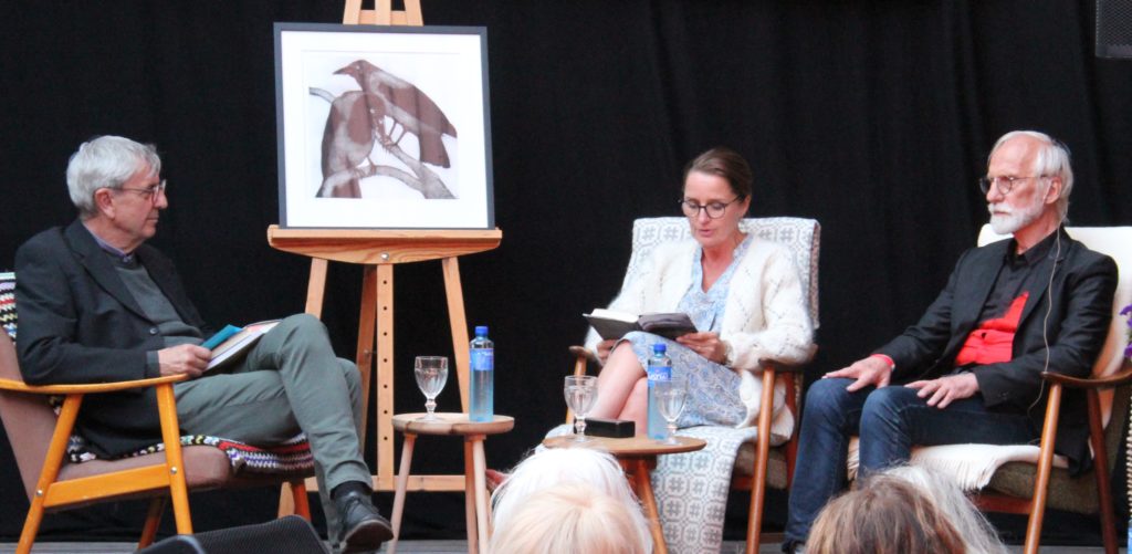Så kom Fløtarguten som måtte spytte ut snusen før han kyssa jenta. I ein etterlaten tekst seier Børli at mennesket bare er eit utkast som kanskje skal finne ei anna form. Akkurat der kom omverda inn i form av eit kraftig måkeskrik. – Hysj!, sa Jacobsen, du må ikke forstyrre meg! Dei stoppa ikkje heilt. Måkene råka passande inn i humoristiske tekstar med skrika sine, og det var greit å ha dei med, sa ho etterpå. Folk humra og lo og klappa.