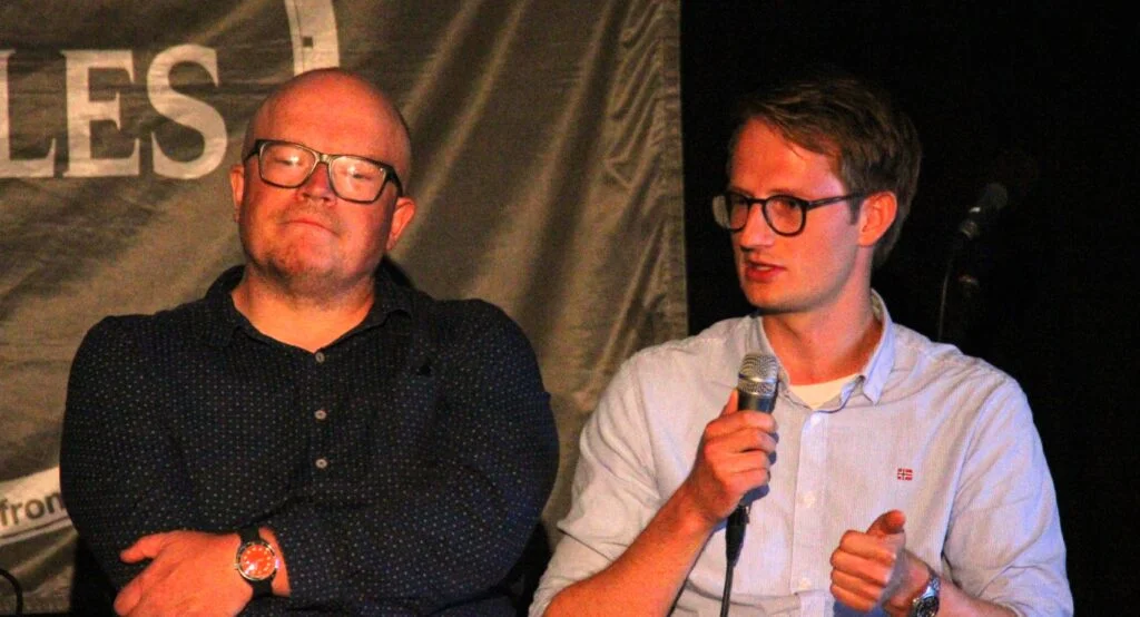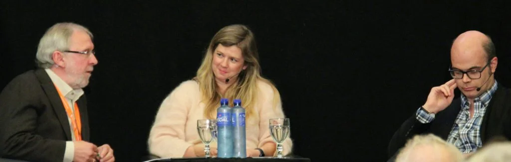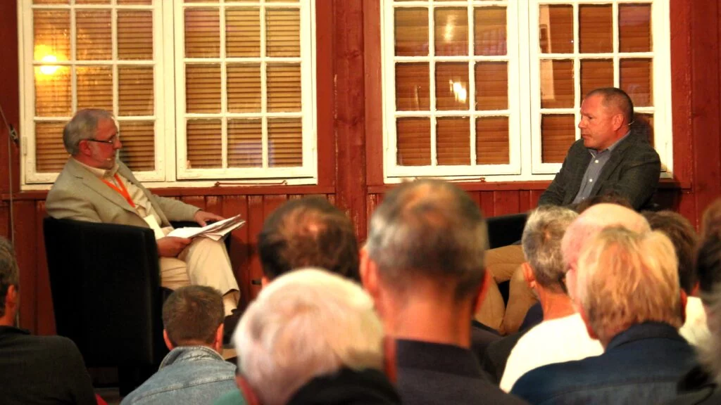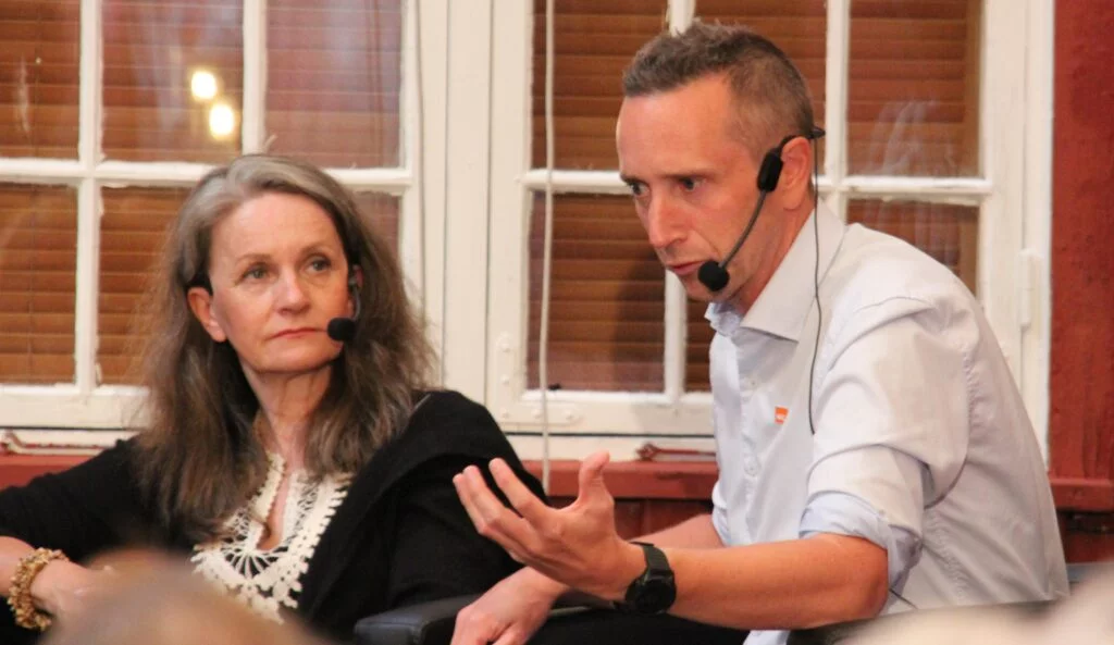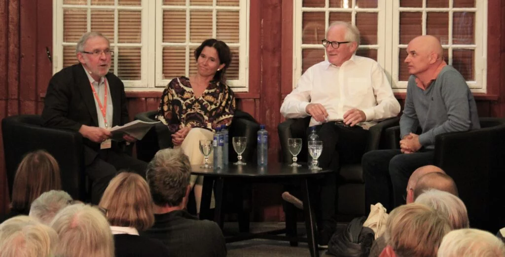 Så kom Kristina Quintano og Frode Forfang i tillegg på scenen. Ho er en norsk-maltesisk forfattar, oversettar, forleggar og menneskerettsforkjempar. Ho har dokumentert overfartar og drukningar i Middelhavet. Forfang er tidlegare direktør i Utlendingsdirektoratet (UDI). Kva skjedde undervegs i 2015 frå medkjensle og velvilje til brått krav om stengte grenser?