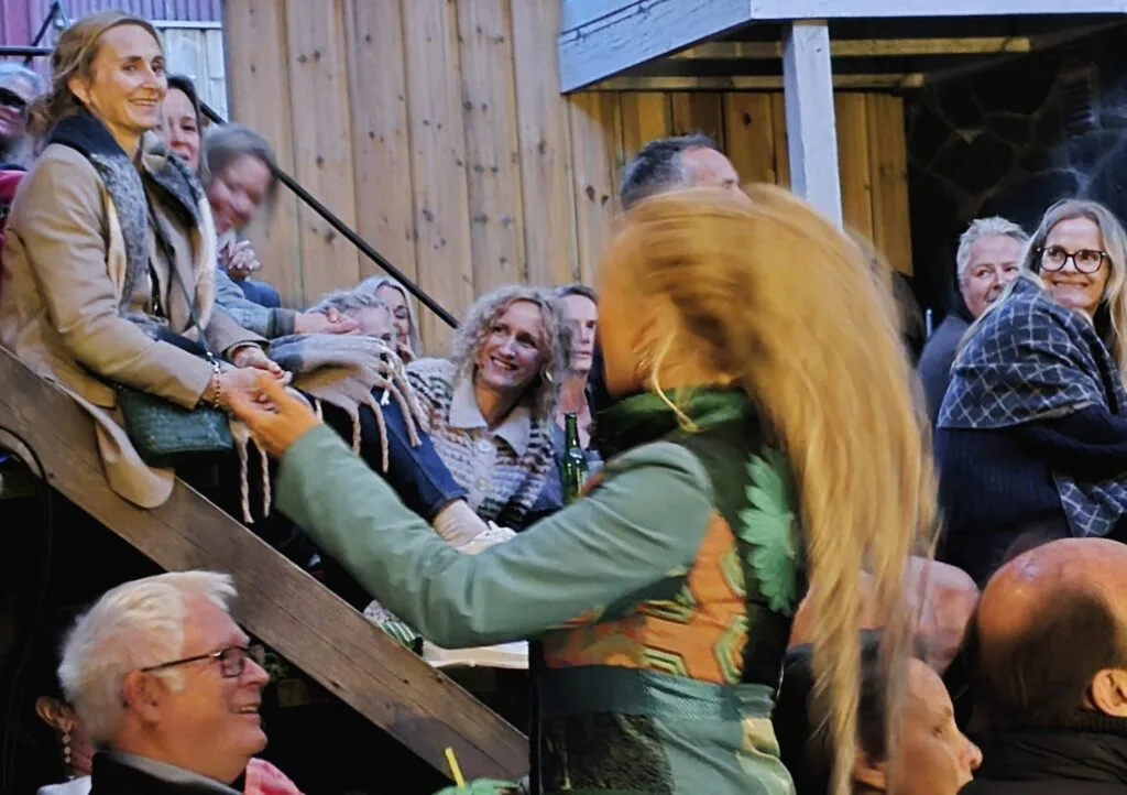 Ein godt fylt Bakgård fekk ei forestilling i to gir. Det var ei velsigna fredsommeleg, nesten andektig, ro til Børlis dikt og tekstar om skogen, fuglane, elva, og den klokkeklare songen og strengespelet. Me fekk to runesongar – det er magiske songar som skal gi frelse og helse, eller fortel, dei eldste skal vere over 4000 år. Langeland song dei på finsk og eiga omsetting til norsk.