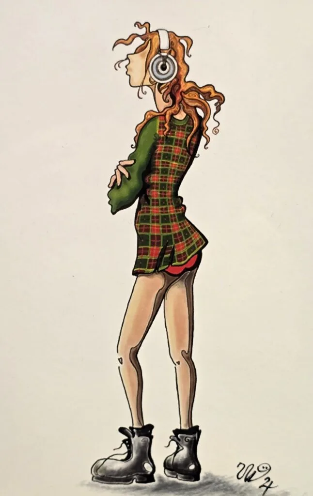 Som sist i 2021 hadde ho med seg teikningar/collage med meir til sal, i pausa og etter konserten.