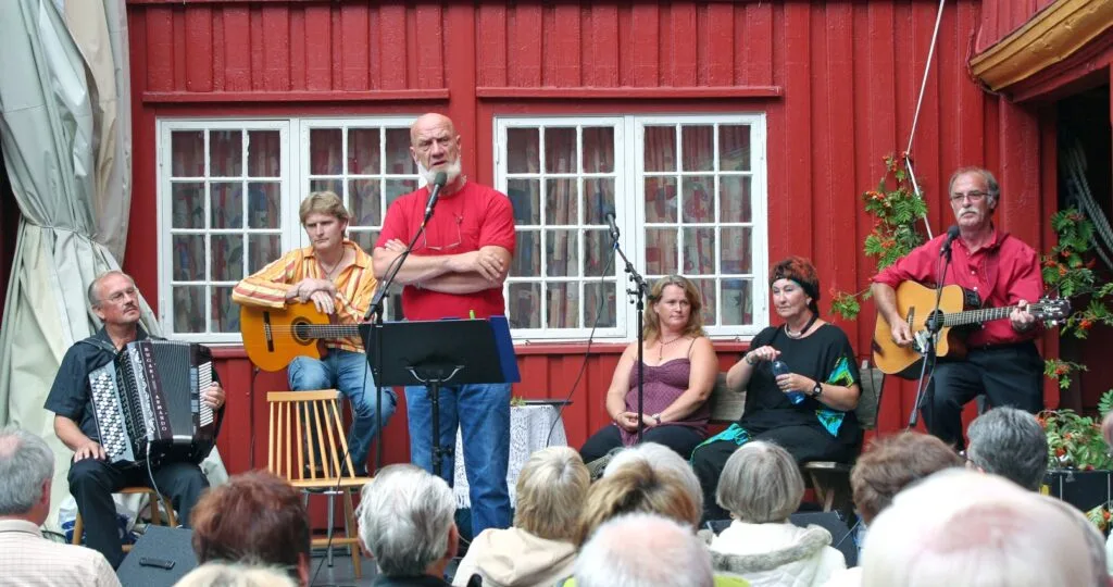 Men dei leverte godt, og publikum var med. To høgdepunkt var Anita Wroldsens sjølvlaga og sjølvkomponerte Just because it’s real og New start. Ho skriv au tekstar på norsk, og det ser me fram til å høyre. Det kom applaus undervegs då Thorbjørn Clausen hadde gjengen med på Marius Müllers Carmen. Alt i alt tjuesju melodiar med ekstranummer, og heilt til slutt siterte Leif Arne Danielsen Jakob Sandes dikt om dei to drikkfeldige bøndene.