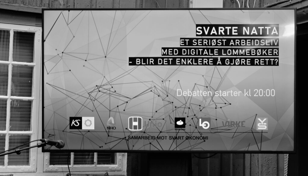 Onsdag kveld var Svarte natta. Det er ein klassikar i Arendalsveka og i Bakgården, tilbake til 2014. På nettsida her kan du finne debattane (og konsertane) tilbake til 2016. Bak arrangementet står Samarbeid mot svart økonomi (KS, LO, NHO, Unio, Virke, YS og Skatteetaten). Temaet i år var som i fjor digiale lommebøker som blir innført snart. Dei er tenkt som eit verktøy for eit meir seriøst arbeidsliv. EU innfører digital lommebok i november neste år, og det hastar for Norge å komme i gjenge blei det sagt.